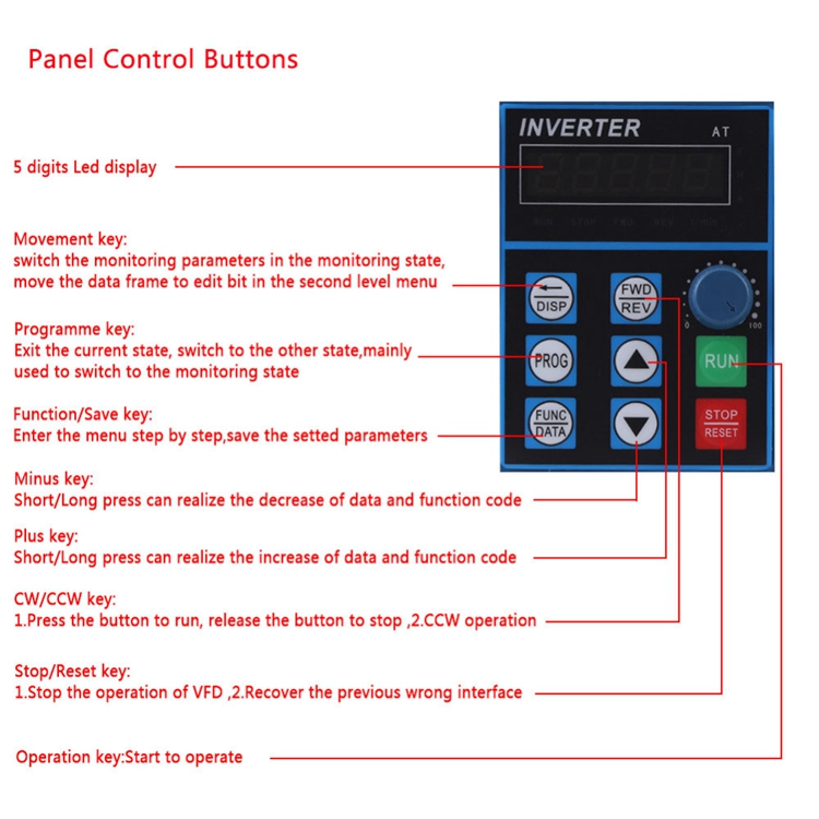 This Variable Frequency Drive is made of high quality shell material, heat resistant and flame retardant. Humanized keyboard design makes it easy to operate. Digital display screen makes it convenient to read clearly.