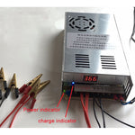 - Full self stop, the indicator light on the power supply is the power indicator and does not change color. The power supply usually heats up during charging. The power supply does not heat up when fully charged. Of course, you can also use a digital meter to measure the voltage of the battery cell. If the lithium iron battery is 3.65V or the ternary polymer battery is 4.2V, it is fully charged (Warning! The adjustable power supply means adjusting the no-load voltage to a certain level and charge it to the highest level, and the lithium iron phosphate battery can be adjusted to 3.65V or the ternary polymer lithium battery can be adjusted to 4.2V. Do not adjust it too high.). After being fully charged, the power will not be cut off, and the battery cell voltage will only be maintained. It won't overcharge. (No load refers to the charger being plugged into 220V and the output not connected to the battery)