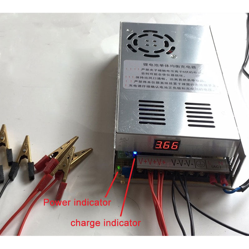 220V Lithium Battery Cell Balanced Charger + 4 Pair of Wires Fixed 35A 2.70-4.85V Adjustable with Charging Indicator