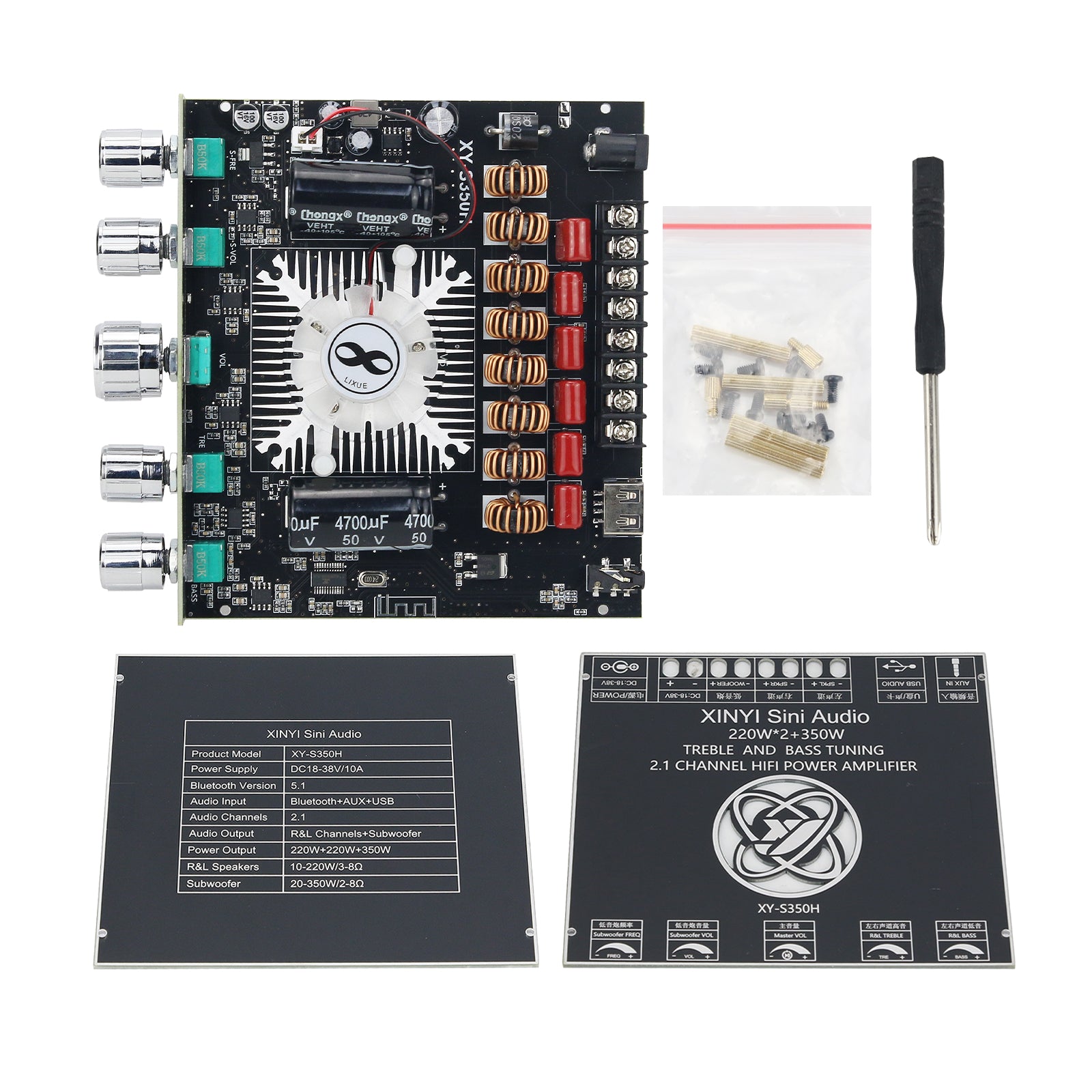 220W*2 + 350W BT5.1 Bluetooth Amplifier Kit 2.1 Channel Amplifier Power Board TPA3251D2 XY-S350H