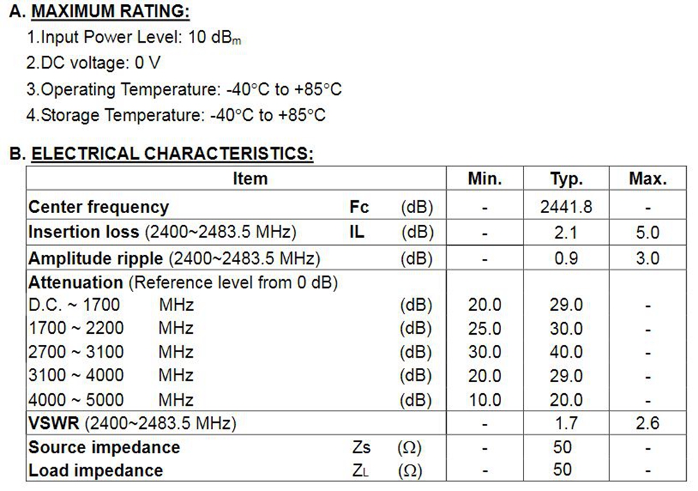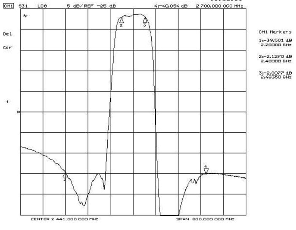 - This filter has a center frequency of 2450MHz and a bandwidth of 85MHz. It is used for performance optimization of 2.4GHz receivers, and is specifically designed for anti-interference in WiFi, Bluetooth, and for Zigbee systems. It can effectively filter out of band signals, reduce noise, and increase dynamic range.