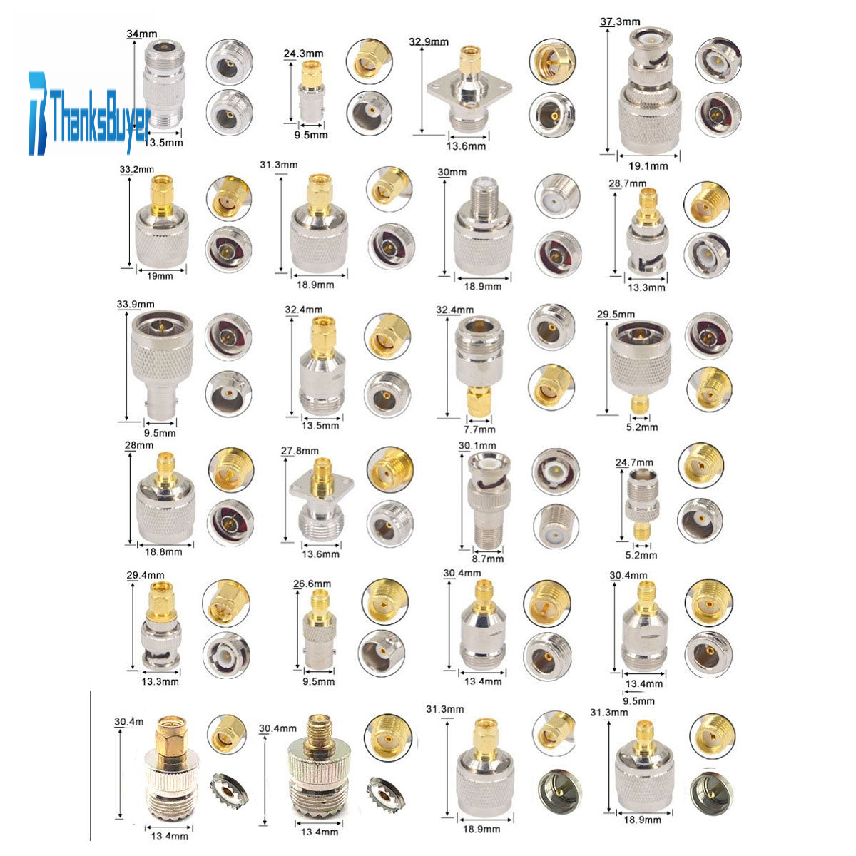 2、24 Type Adapters: The set includes 24 Type UHF Adapters, which help you on connecting the following antenna types to your radio: BNC-connector, F-connector, SO-239, UHF or PL-259, MCX-connector, FME-connector, TNC-connector,Mini UHF and SMA. Please See Picture 2 for Full List in Description.