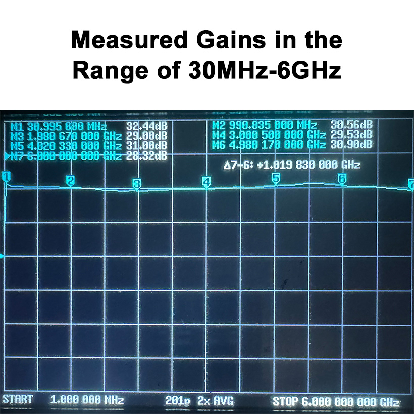 It is a 2MHz-6000MHz LAN amplifier module with high flatness. You can also buy the version with a type-c 5V port. The version can be powered by a 5V type-c mobile phone charger, a computer USB port, and the 5V USB port of your instruments.