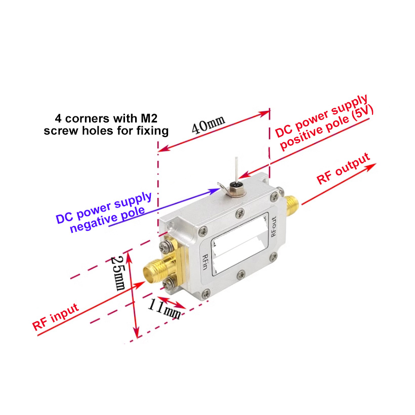 It is a 2MHz-6000MHz LAN amplifier module with high flatness. You can also buy the version with a type-c 5V port. The version can be powered by a 5V type-c mobile phone charger, a computer USB port, and the 5V USB port of your instruments.
