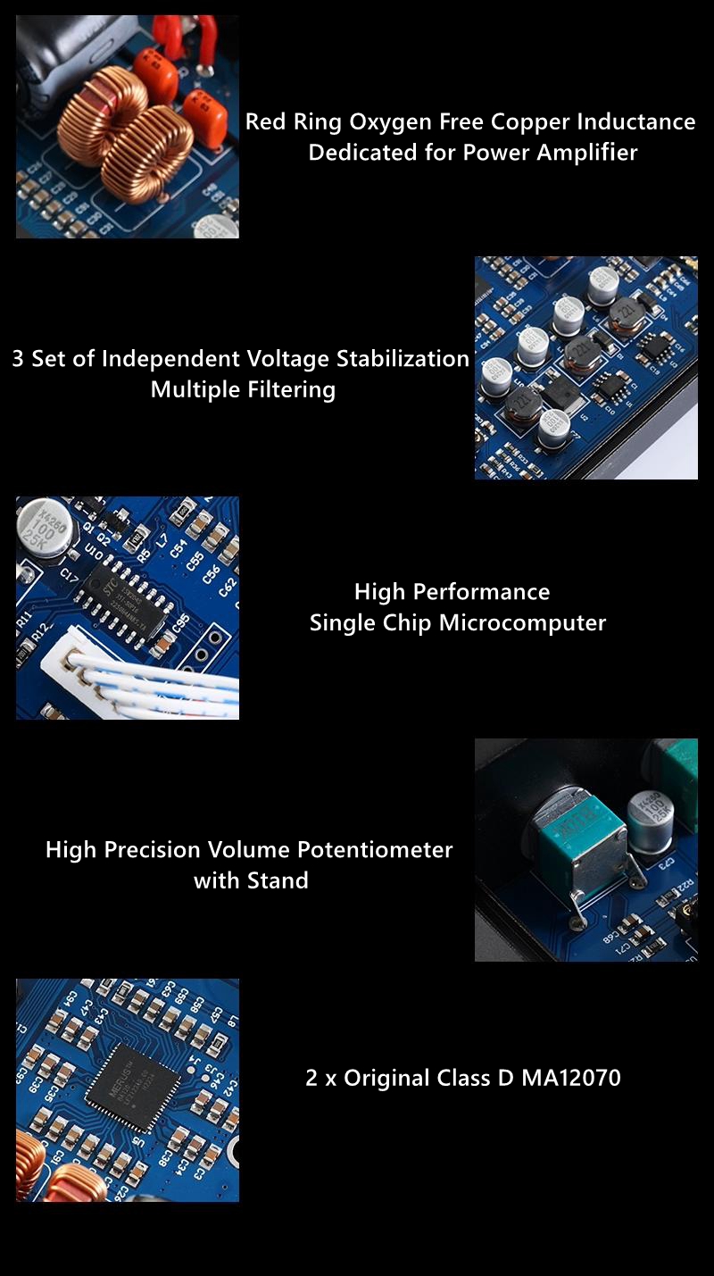 - Adopting red gray ring class D power amplifier inductance, higher filtering performance