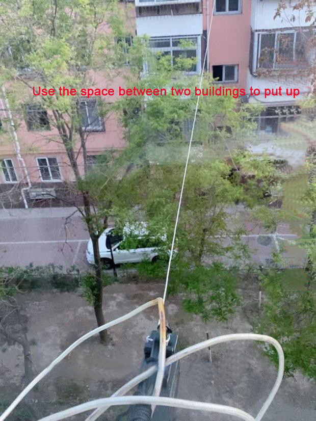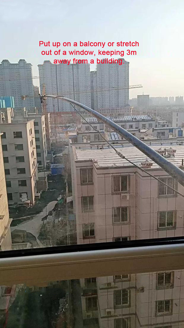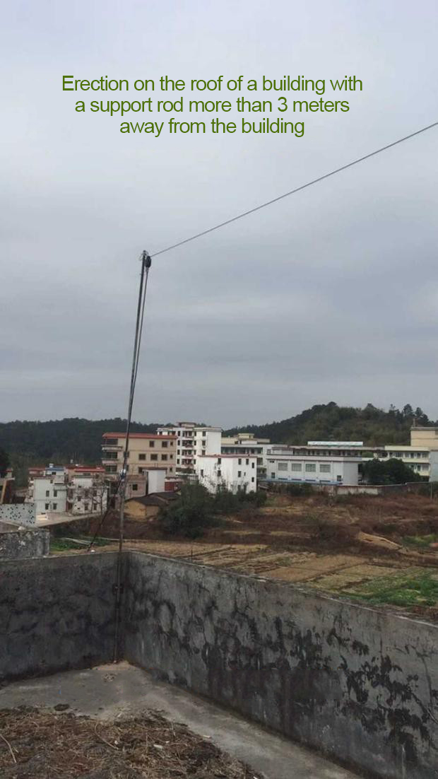 8B150W end-fed antenna consists of an end-fed balun and a 40-meter oscillator. The installation space requires more than 45 meters in length, and the antenna oscillator is more than 3 meters away from the ground or buildings. The antenna can be erected horizontally, diagonally, and vertically. The oscillator is allowed to have a natural drooping arc, but cannot be turned.