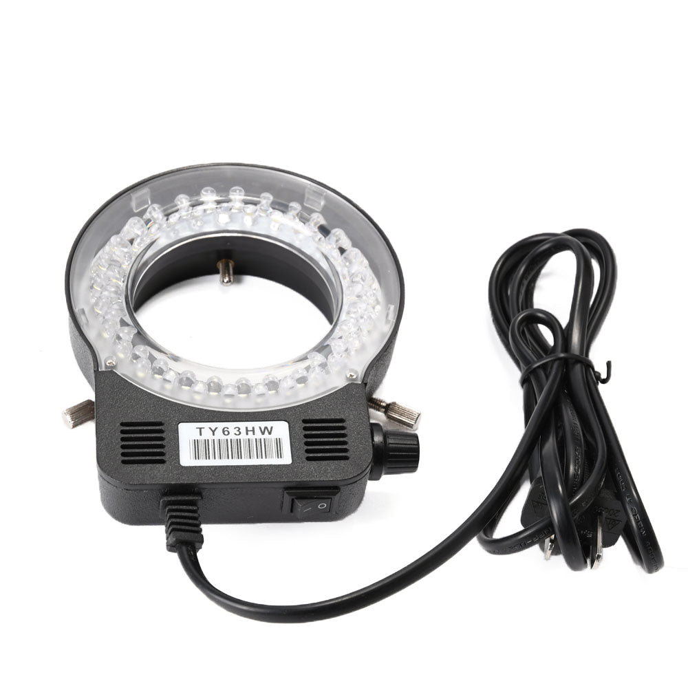 - An excellent stereo inspection microscope with intensity-adjustable 56-LED ring light