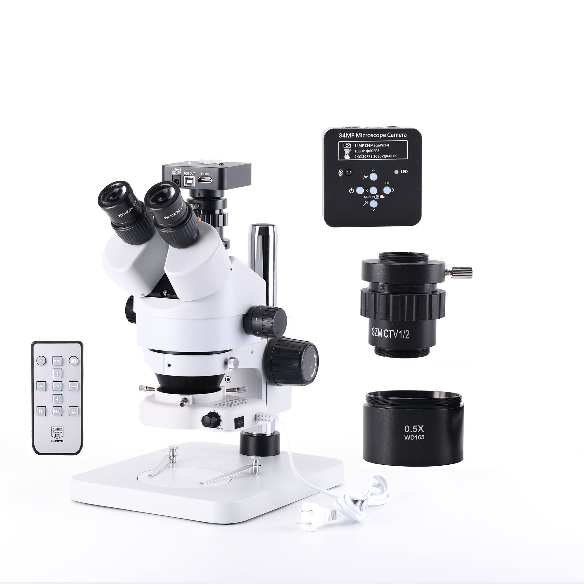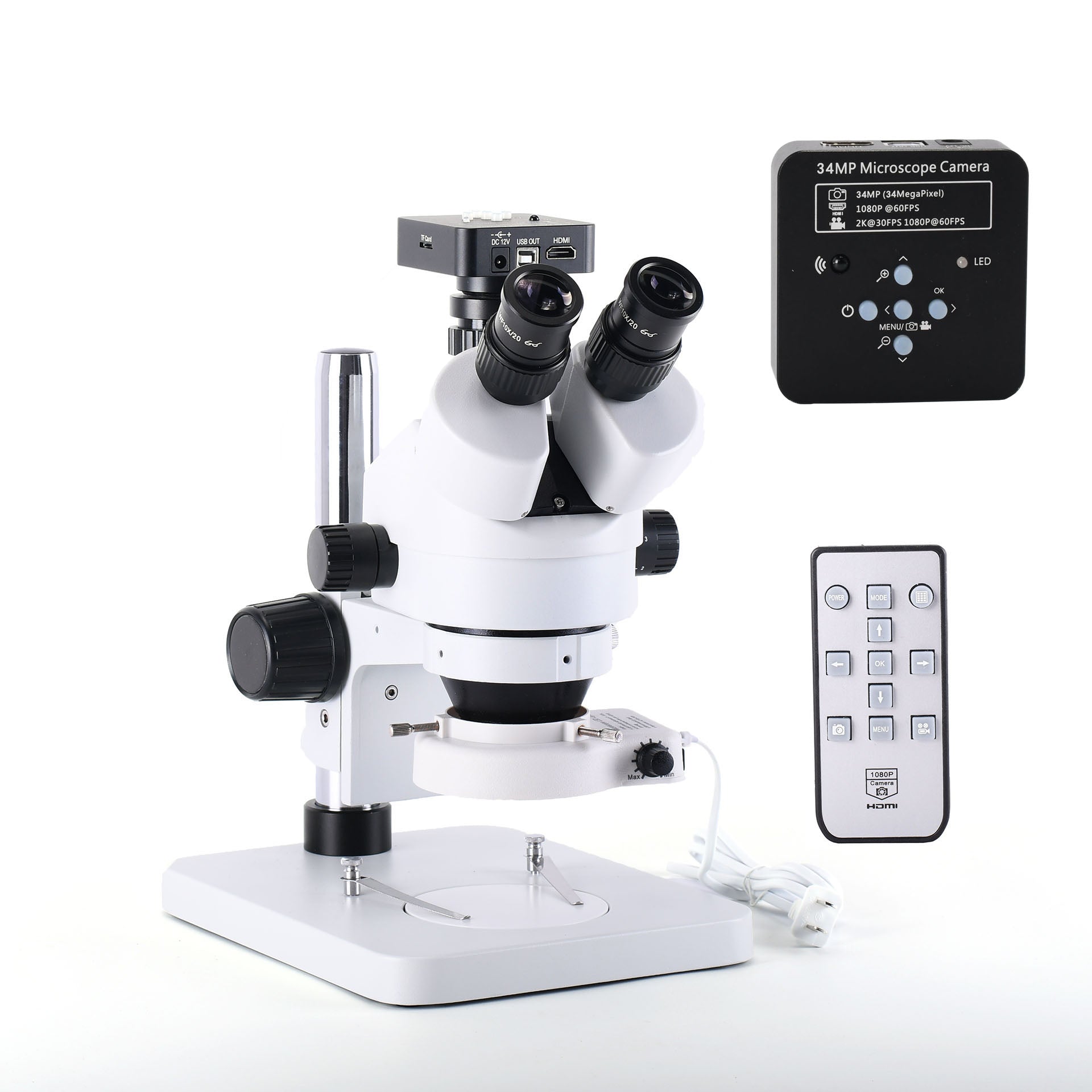 34MP Stereo Microscope with Camera PCB Repair Microscope Kit w/ 56 LED Light Zoom 7X-45X