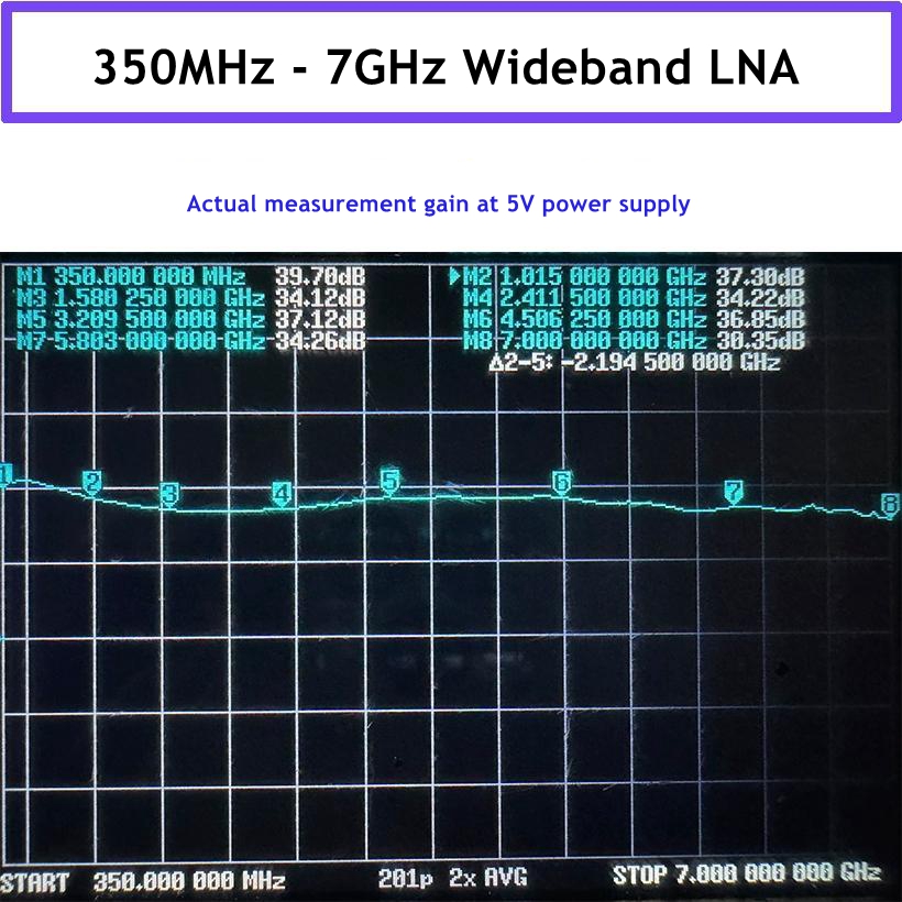 - This amplifier is designed for general frequency bands, such as broadband bottom noise amplifier developed for receiving devices for SDR reception UHF, 868MHz, 915MHz, 1090MHz, 1420MHz, for Beidou, GPS, GLONASS, Galileo, navigation positioning, 2.4GHz image transmission, 5.1GHz/5.8GHz image transmission. High flatness and high gain within the band.