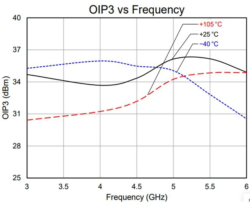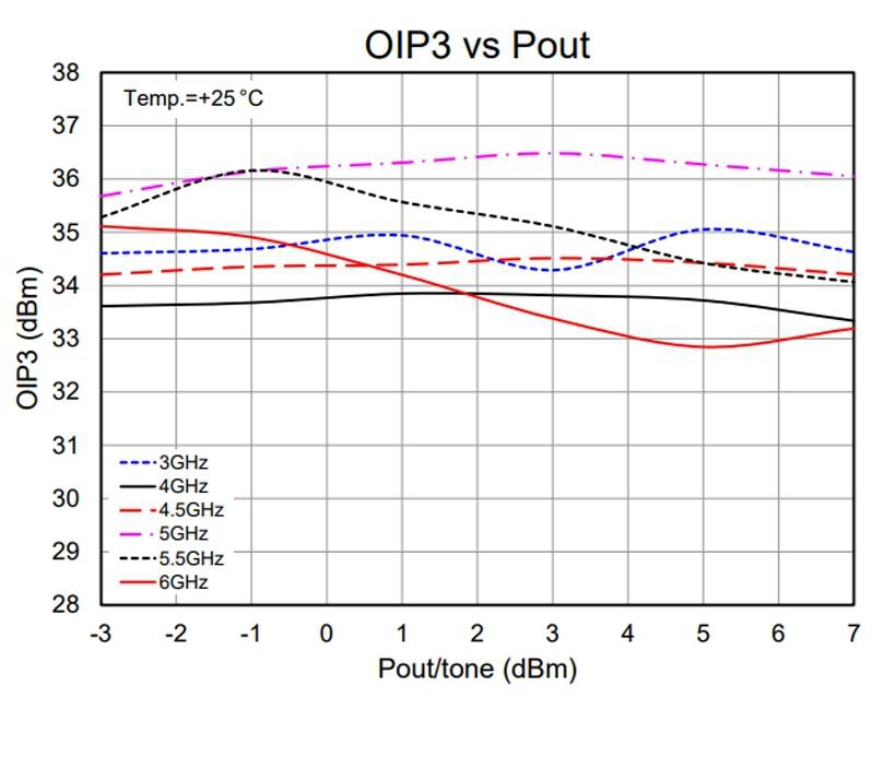 - Output IP3: Pout = +2dBm/tone, Δf = 1MHz (+ 35.5dBm)