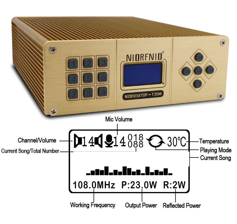 35W Car FM Transmitter Kit Adjustable Frequency Broadcast Support For TF Card PC Control T35M