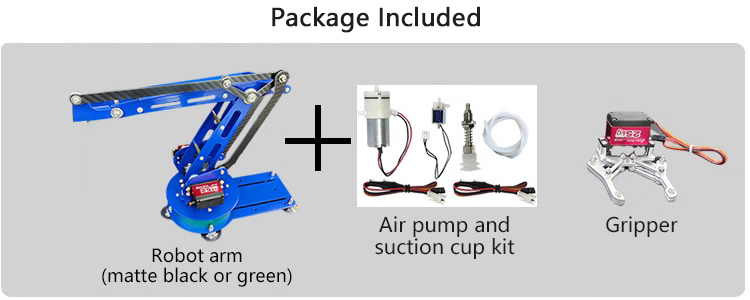 3DOF Matte Black Robot Arm Assembled Mechanical Arm w/ Air Pump Gripper Kit (without Control Board)