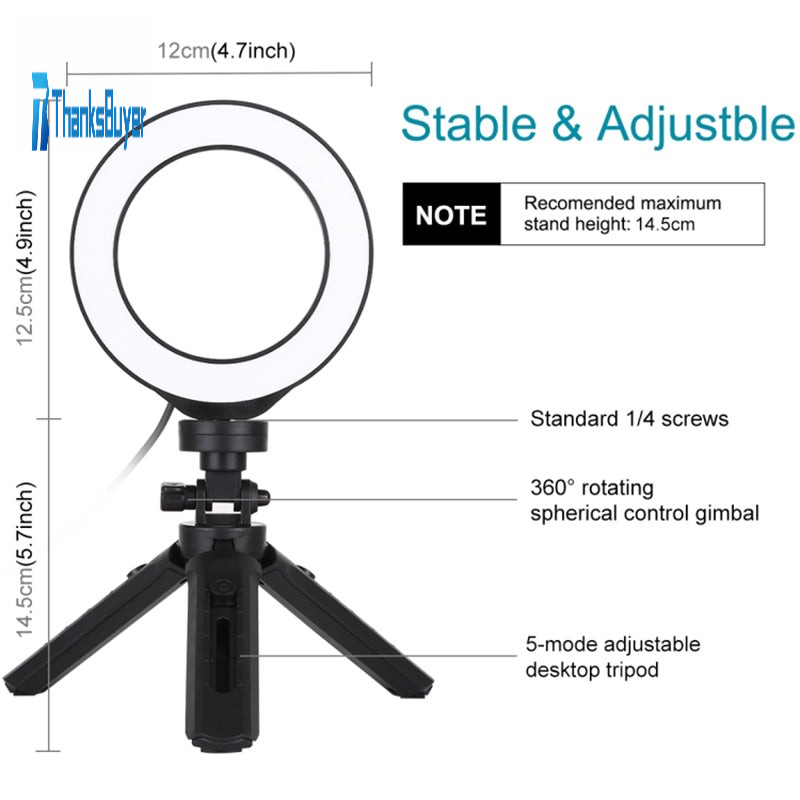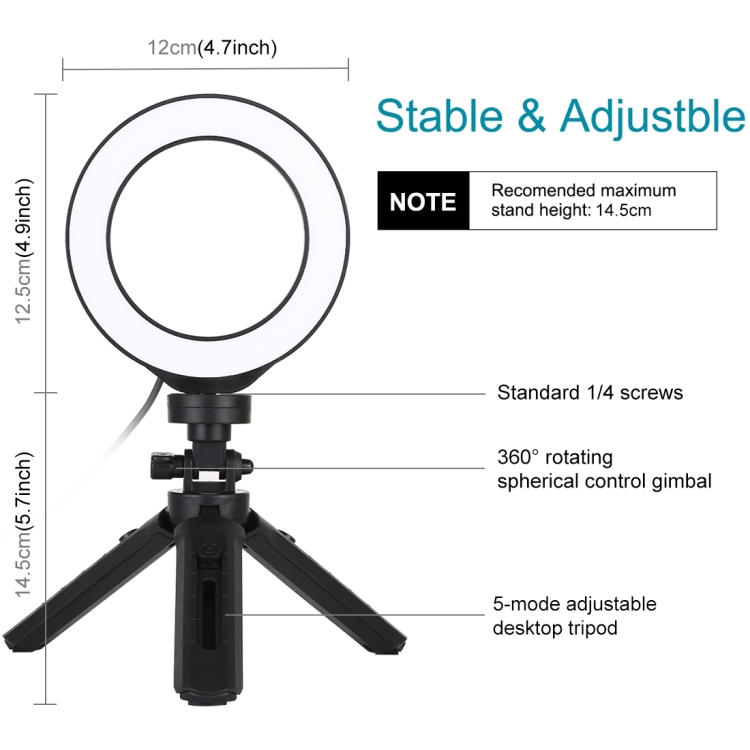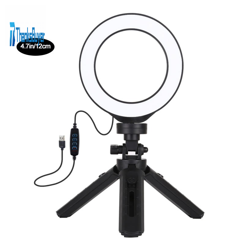 4.7" Dimmable LED Ring Light Vlogging Photography Video Light 3 Mode w/ Pocket Tripod Mount PKT3058B
