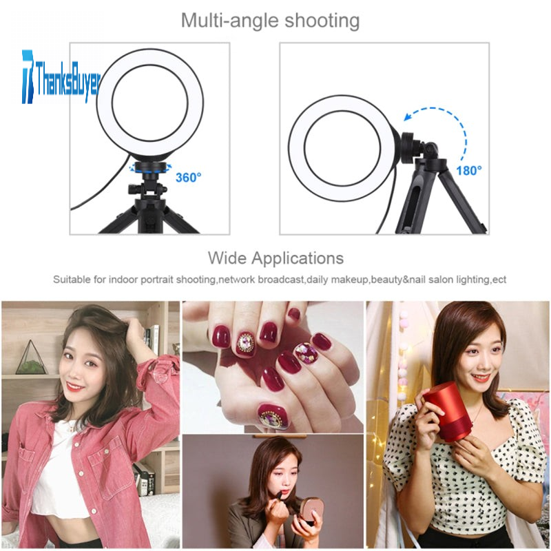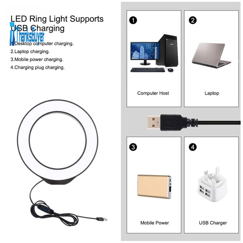 5. The USB ports can be used with multiple devices, such as connect computer host, laptop, mobile power and USB charger. You will be able to enjoy LED ring light at any time free.