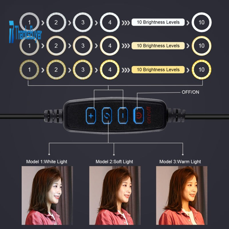 4. 3 colors lighting mode adjustable brightness for your choose, you can adjust the color and brightness very easily, excellent brightness can be achieved without installing extra colorful filters. Three colors of soft natural light illuminate your beauty in different occasions.