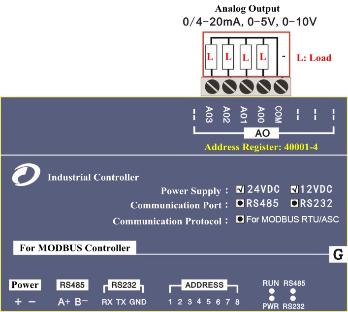 Support RS485 interface, for Modbus protocol touch screen, text screen.