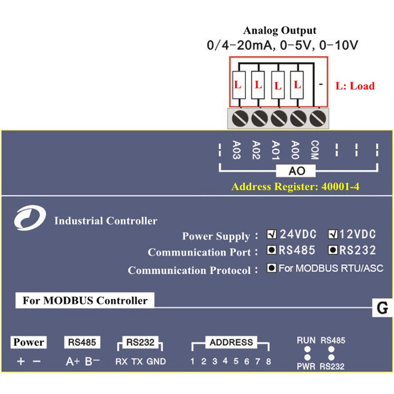 4-Channel Analog Output Module 0-20MA/4-20MA/0-5V/0-10V For MODBUS Controller RTU-307C RS485