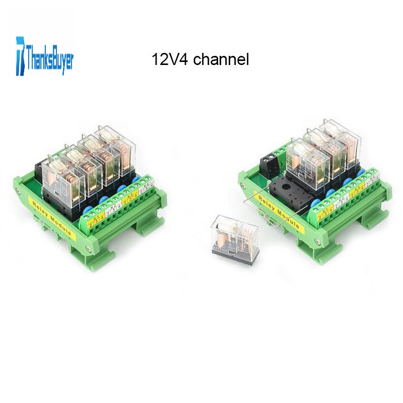 4 Channel OMRON Relay Module SPDT 4 Ways Driver Board Socket DC 12V 16A 1NO+1NC 35mm Din Rail Mount