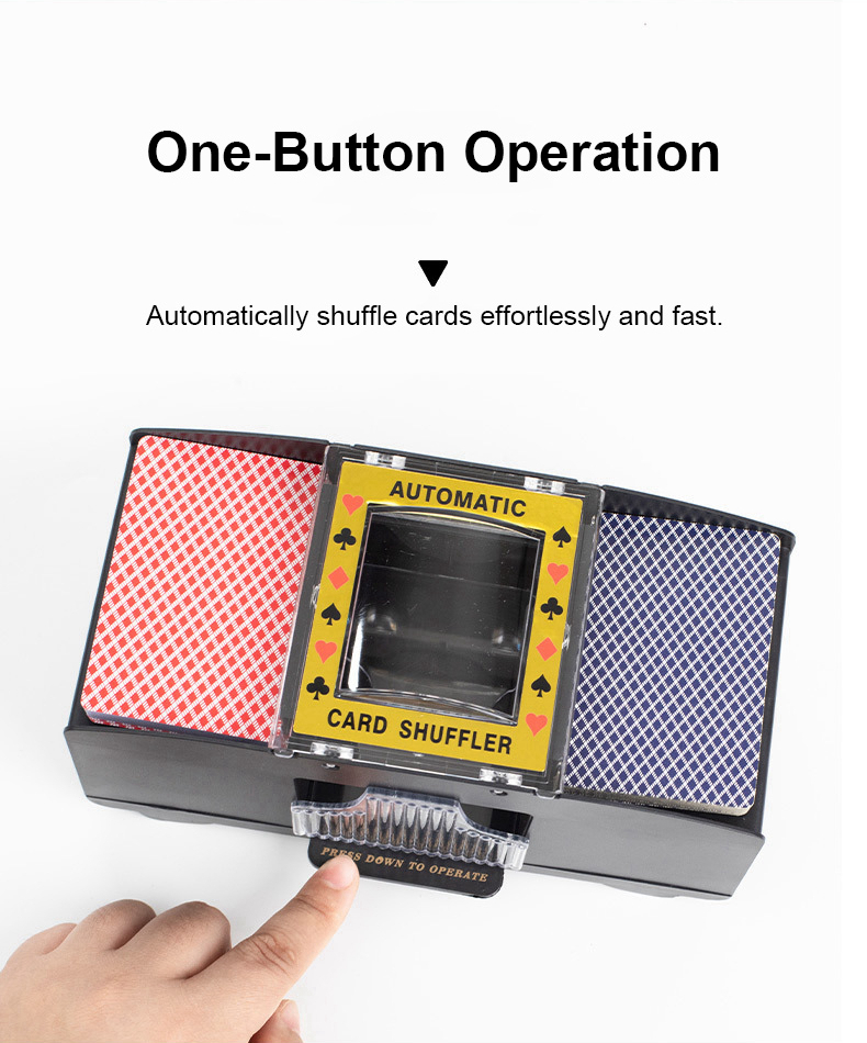 - Easy to use: One-button operation with low noise and more stable performance. Cards are neatly shuffled into tray (cards not included)