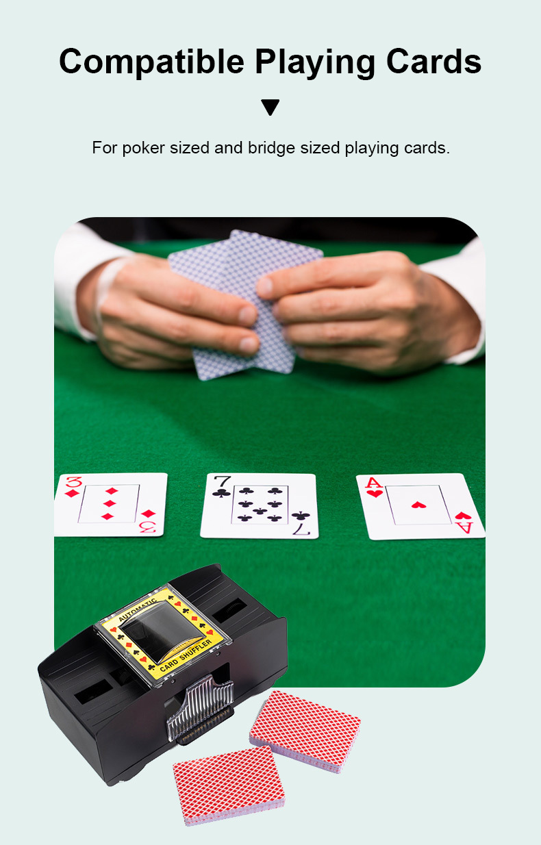 - Compatible with poker and bridge sized playing cards, paper and plastic cards