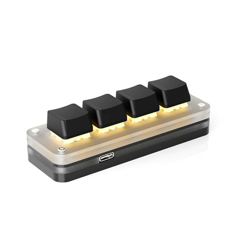 4-Key Custom Keyboard Small Keyboard Small Gaming Keyboard w/ Black Keycaps RGB Backlight for Gamers