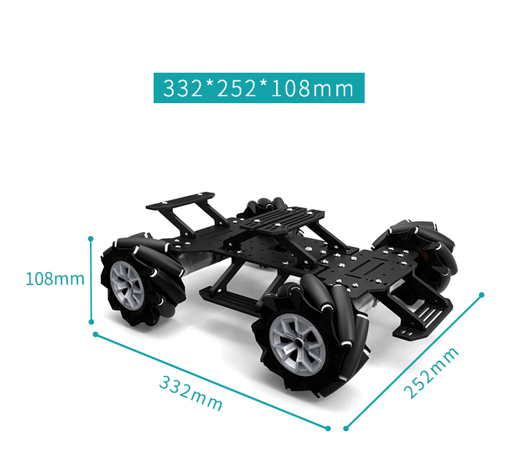- Wheels: Mecanum wheels 360-degree omnidirectional movement (compatible with a variety of conventional tires)