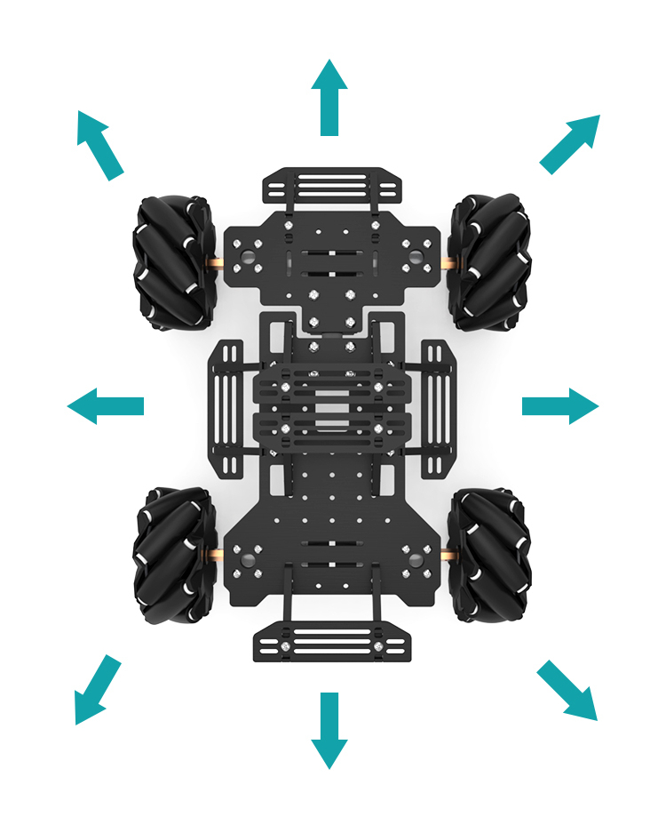 * Mecanum wheel omni-directional movement: 360-degree free movement.