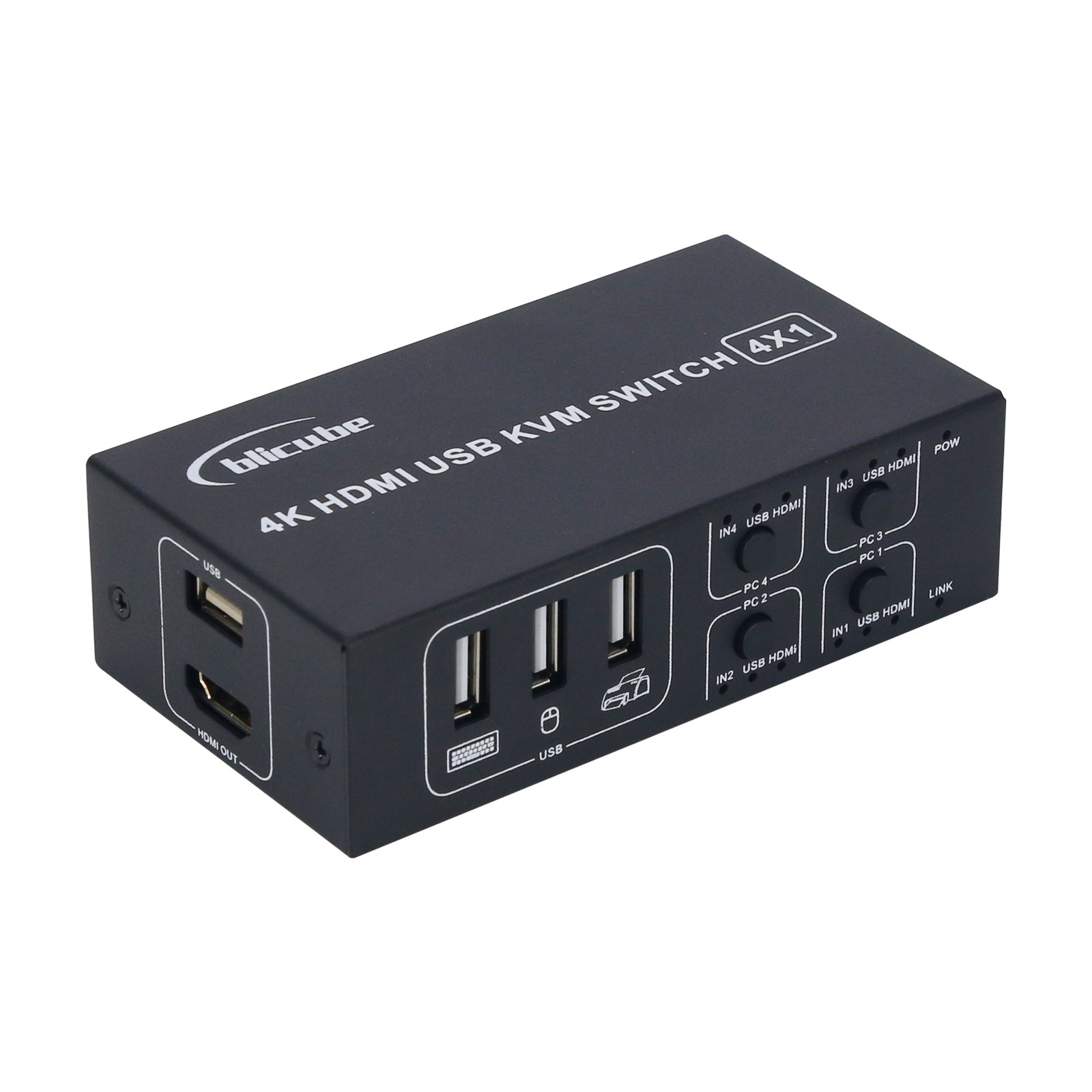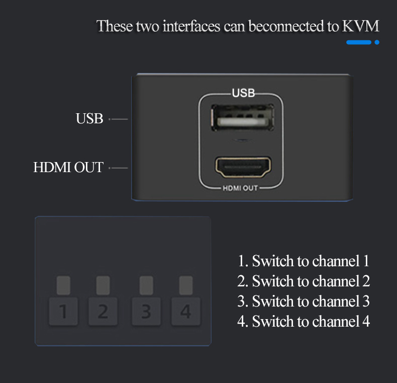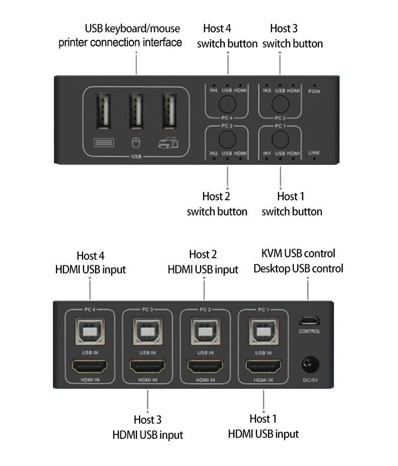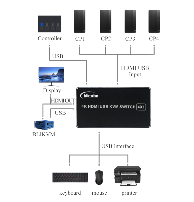 4X1 4K HDMI USB KVM Switch with 4 Input 1 Output Interfaces for USB Mouse Keyboard Monitor Printer