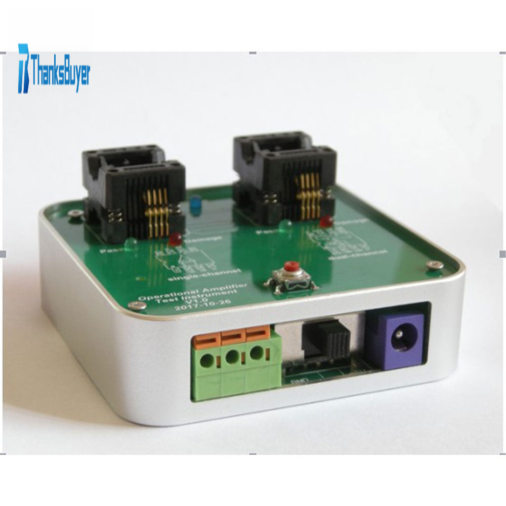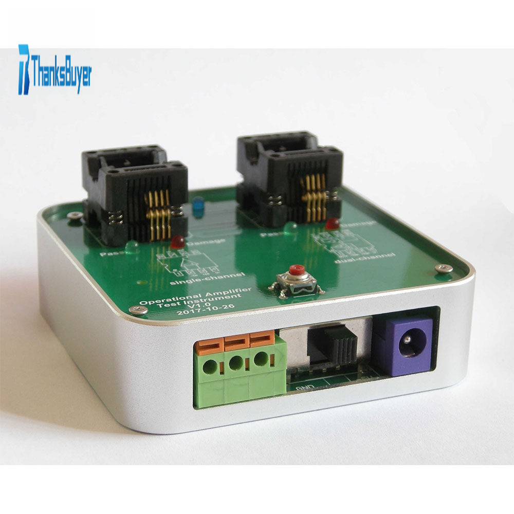 The operational amplifier tester is specifically designed for SOIC packages and is suitable for single and dual op amps in general-purpose. It has audible and visual cues of pass and damage results for tested items, making the detection accurate and efficient. The principle is that the precision voltage division is buffered and then scanned by multiple ADCs to automatically calculate the fluctuation range and stability.