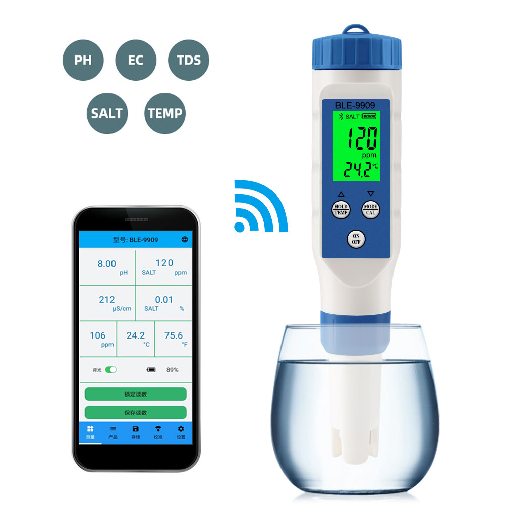5-In-1 Bluetooth Water Quality Meter Water Quality Tester BLE-9909 to Measure PH/TDS/EC/SALT/TEMP