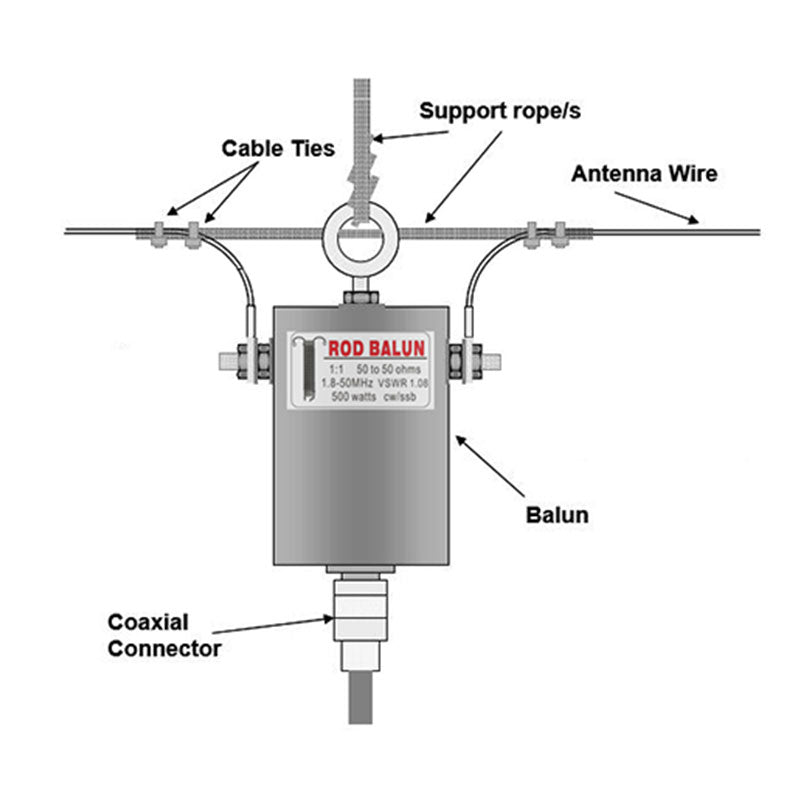 500W 1:1 Waterproof HF Balun for 160m - 6m Bands (1.8 - 50MHz) Waterproof DIY Inverted V antenna
