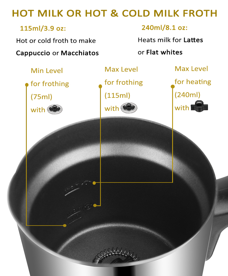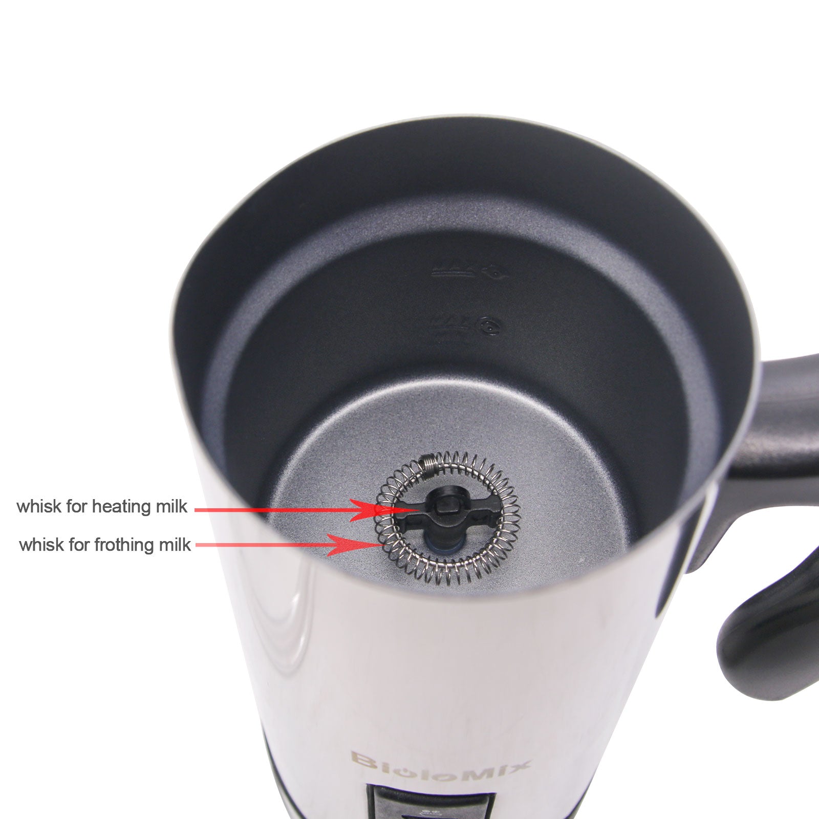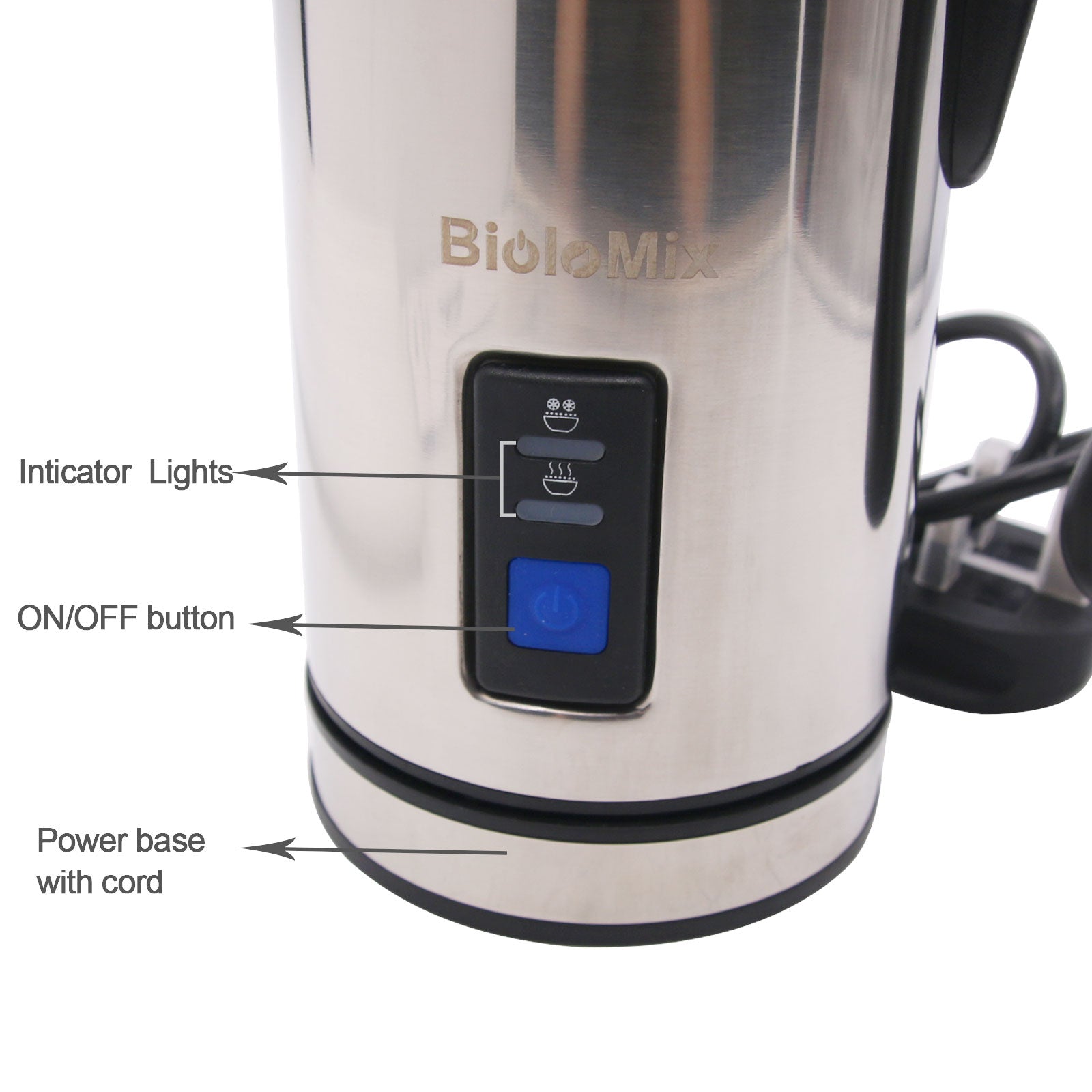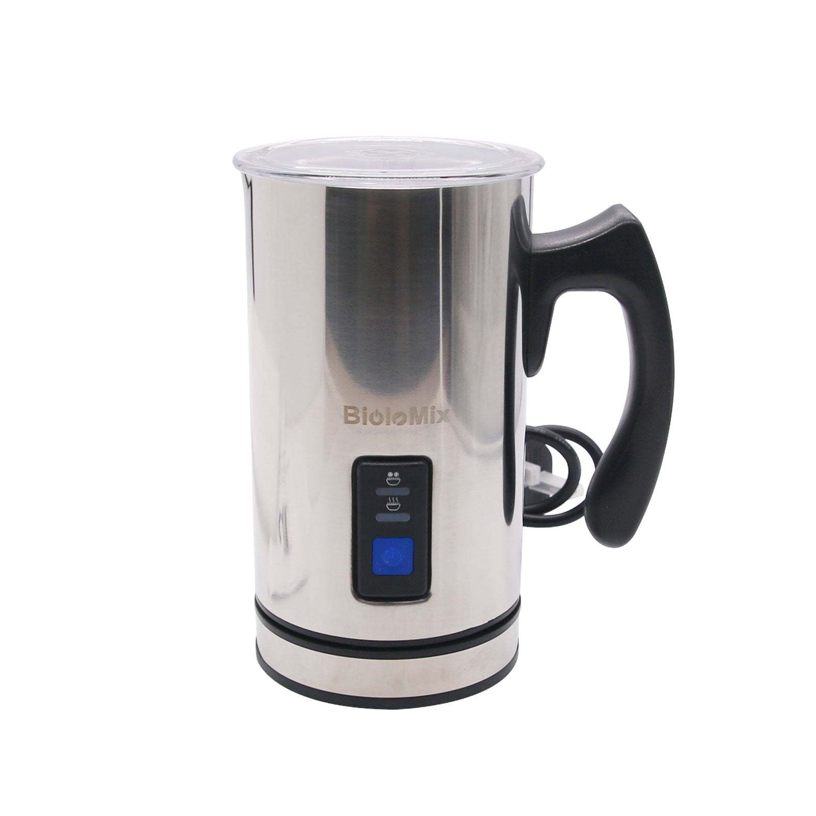 - Biolomix Milk frother makes hot and cold milk froth for cappuccinos, heats hot milk for lattes.