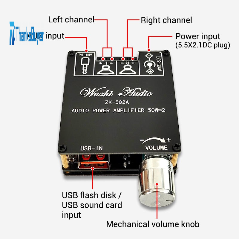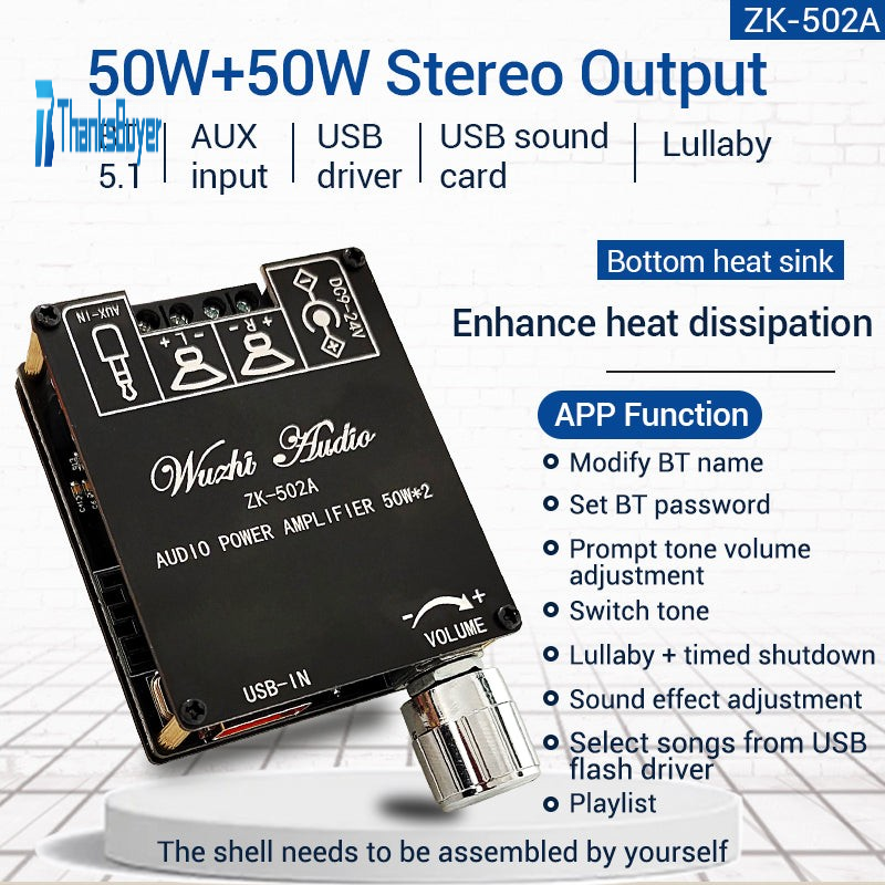 50Wx2 Bluetooth Power Amplifier Board Stereo Two-Channel Audio Power Amplifier Module ZK-502A