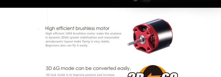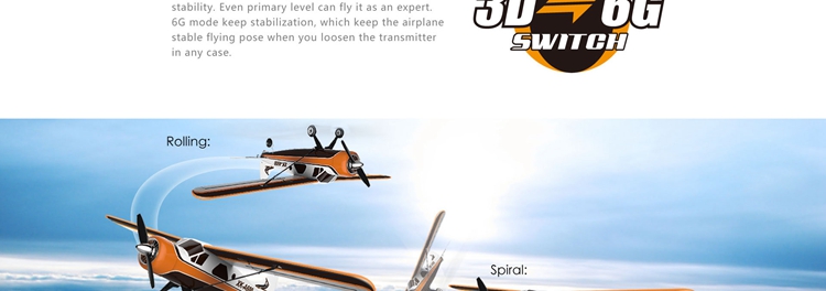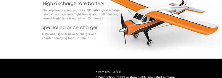 The XK DHC-2 A600 RC airplane use 6 axis gyroscope with the function of 3D transfer to 6G, 5-ch single wing layout is very suitable for you to do sports and leisure flying. Even if you are a beginner, it also can be easy to fly in 6g mode. If you have a little flying experience, in 3D mode, you can easily make stunt like professional person.
