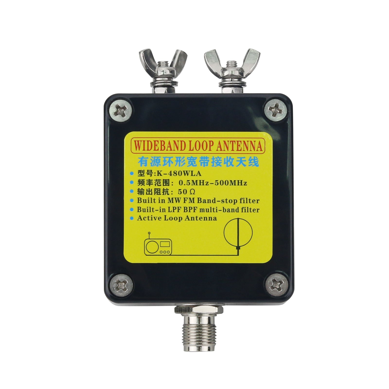- K-480WLA is an active ring broadband receiving full band antenna (with a built-in six band high-performance low-pass, bandpass filter, and MW FM frequency band stop filter), and also the first active antenna with a built-in filter, which can selectively receive signals within a specified frequency band to suppress out of band interference, make the reception effect clearer; providing seven reception modes: full band, MW (medium wave), SW (short wave), FM (frequency modulation), AIR (aviation band), 6m (amateur band), UV (UHF-VHF band), with a built-in 7.4V lithium battery and integrated charging management chip.