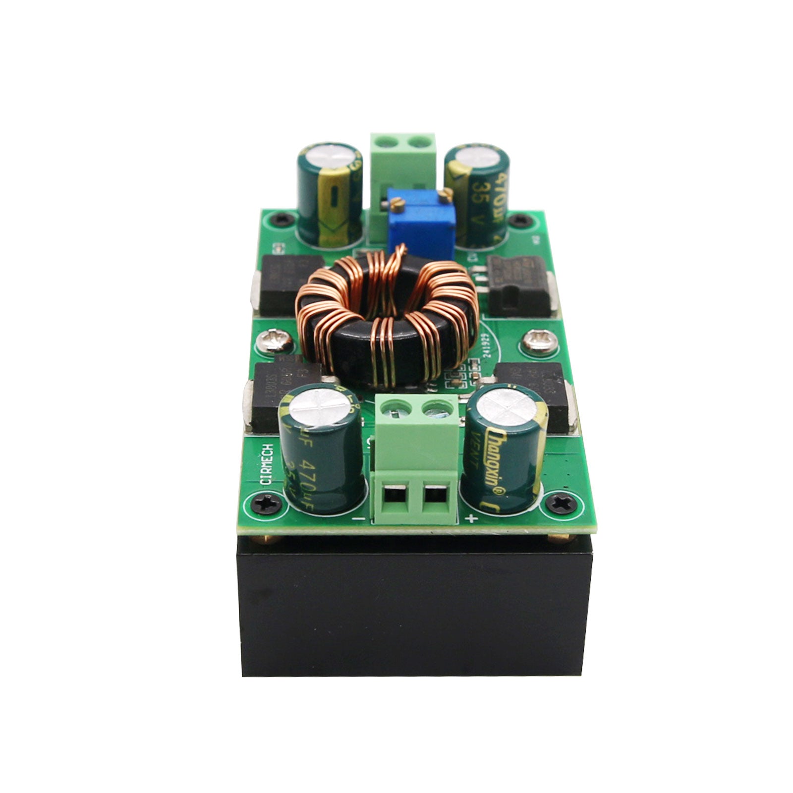 - This buck-boost power supply module uses a large heatsink to enhance heat dissipation, four pieces high-power high-quality voltage regulator tubes, three-wire 0.6 and wire-wound iron-silicon-aluminum magnetic ring inductors, which are not easy to saturate, further reducing heat loss; The 1.6mm circuit PCB board adds stability; the input and output use high-frequency low-resistance capacitors, making the output ripple very small.
