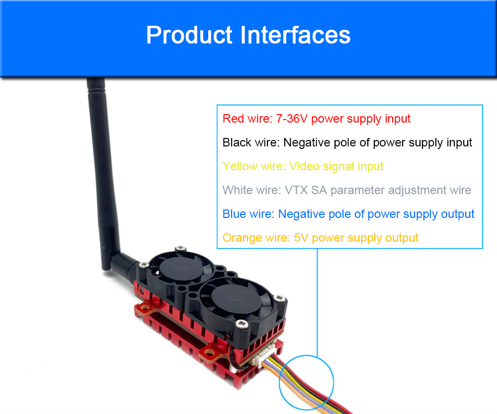 * Leave space when installing the VTX to ensure air convection around and heat dissipation of the module. Otherwise, the module overheat protection will start, reduce the power transmission, or even turn off the power transmission.