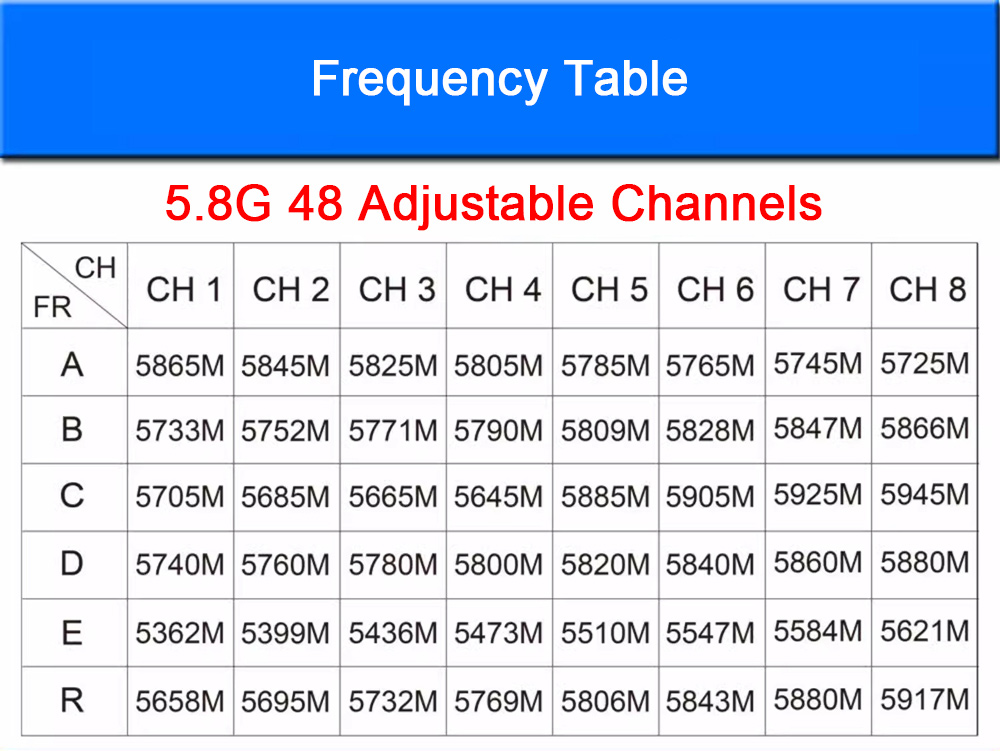 After power on, long press the button to adjust the channel, frequency, channel group and power in a loop. Long press to switch (red light), short press to switch (blue light), double press to switch Pit mode.