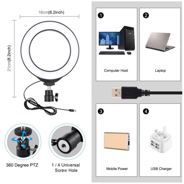 1. LED ring light can be mounted on the holder and take it anywhere, it can also be removed from the stand at any time, the tripod ball head can 360 degree rotating can free to adjust to any angle (The holder is not included).
