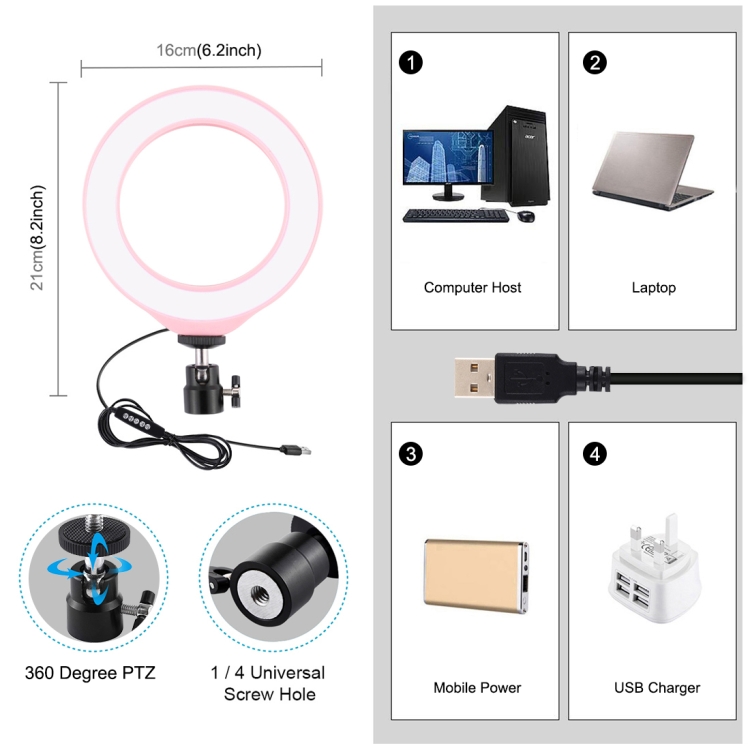 1. LED ring light can be mounted on the holder and take it anywhere, it can also be removed from the stand at any time, the tripod ball head can 360 degree rotating can free to adjust to any angle (The holder is not included).