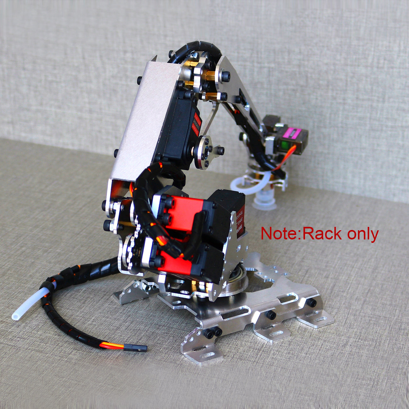 8. All-metal mechanical arm (waist, big arm, forearm, forearm rotation, wrist, wrist rotation), all joints are fixed with high-precision bearings, and the operation is more stable.