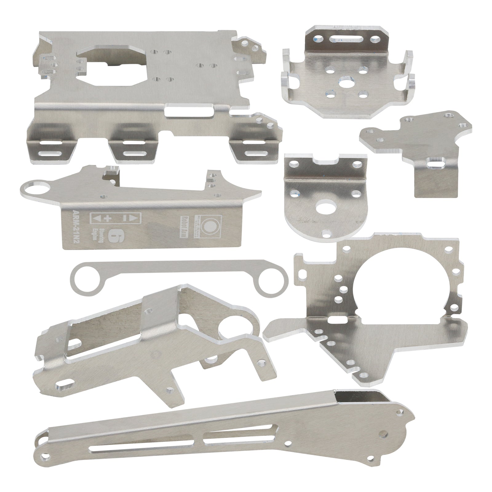 8. All-metal mechanical arm (waist, big arm, forearm, forearm rotation, wrist, wrist rotation), all joints are fixed with high-precision bearings, and the operation is more stable.