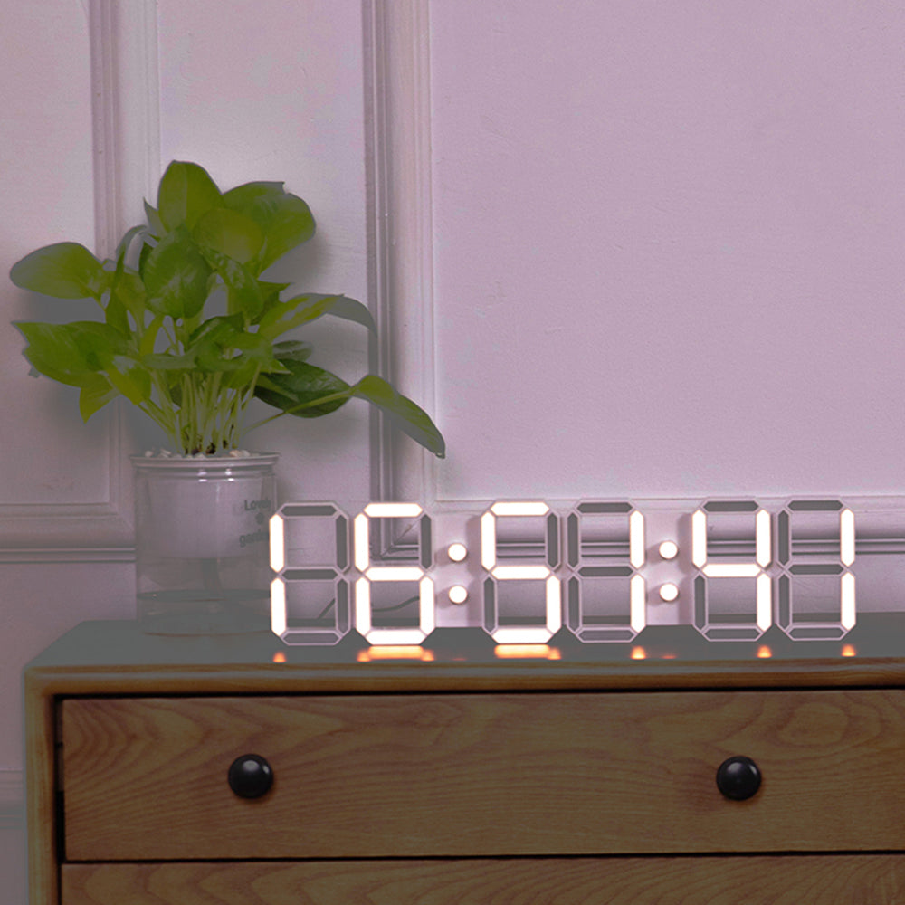 6-Digit 3D LED Clock Wifi Clock Perpetual Calendar Electronic Clock (Warm White Light & White Shell)
