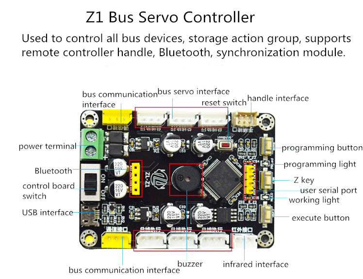 -Servo angle readback, convenient connection mode, serial command control.