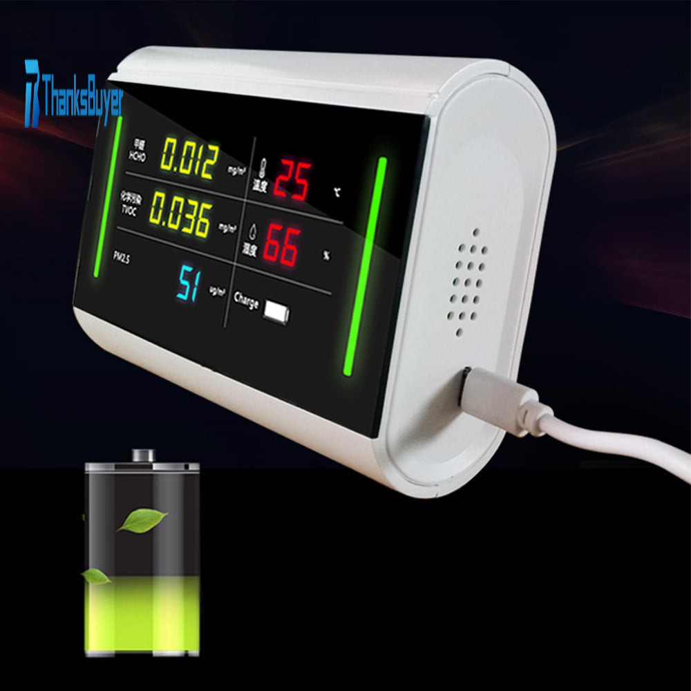 6 In 1 Air Quality Monitor PM2.5 HCHO TVOC Temperature Humidity Power Indicator