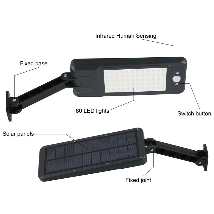 60 LED Solar Motion Sensor Light Outdoor Remote Control Waterproof Adjustable Three Modes for Garden