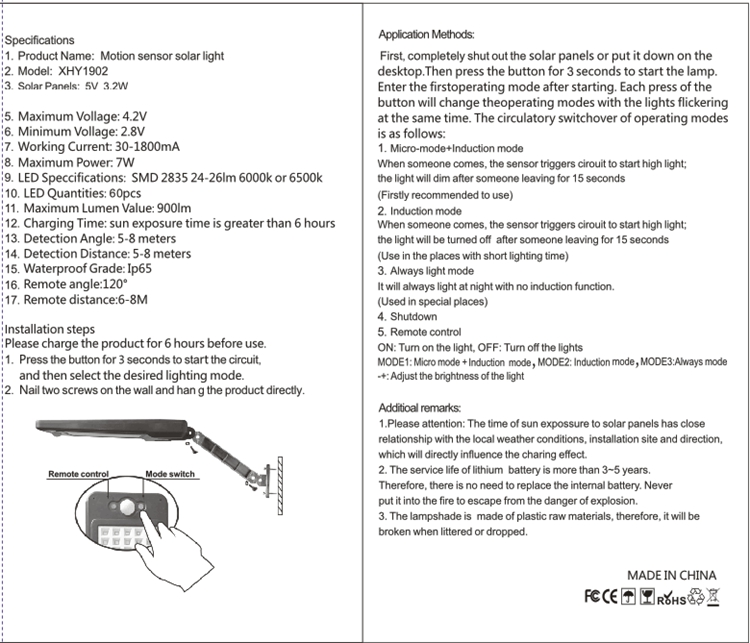 - Three Modes: Sensor Mode, Medium-lightness Mode, and Emergency Light Mode