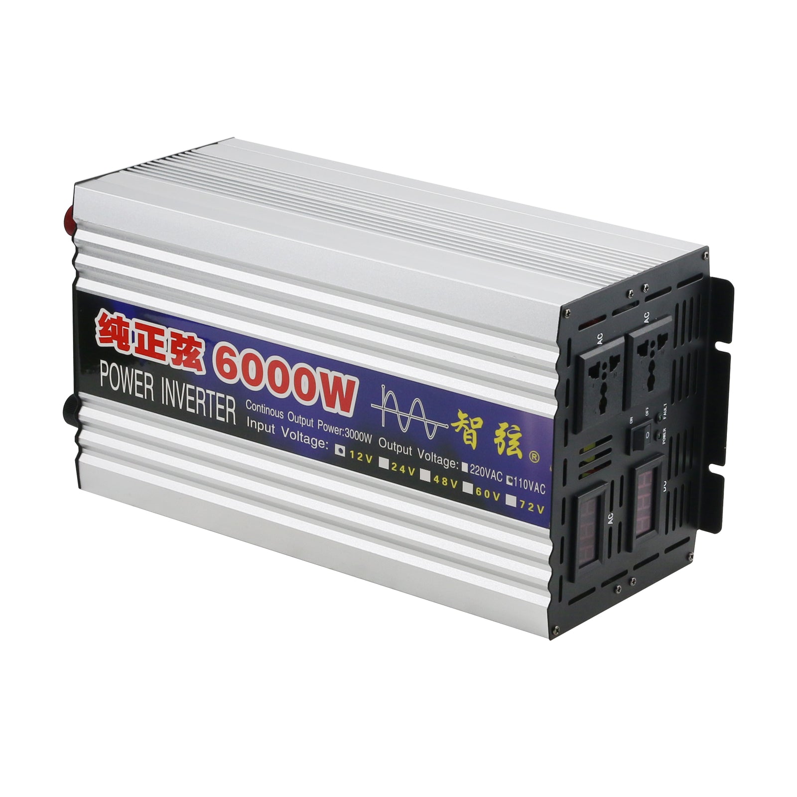 6000W Power Inverter Pure Sine Wave Input 12V Output 110V for Home Appliances Solar Power System