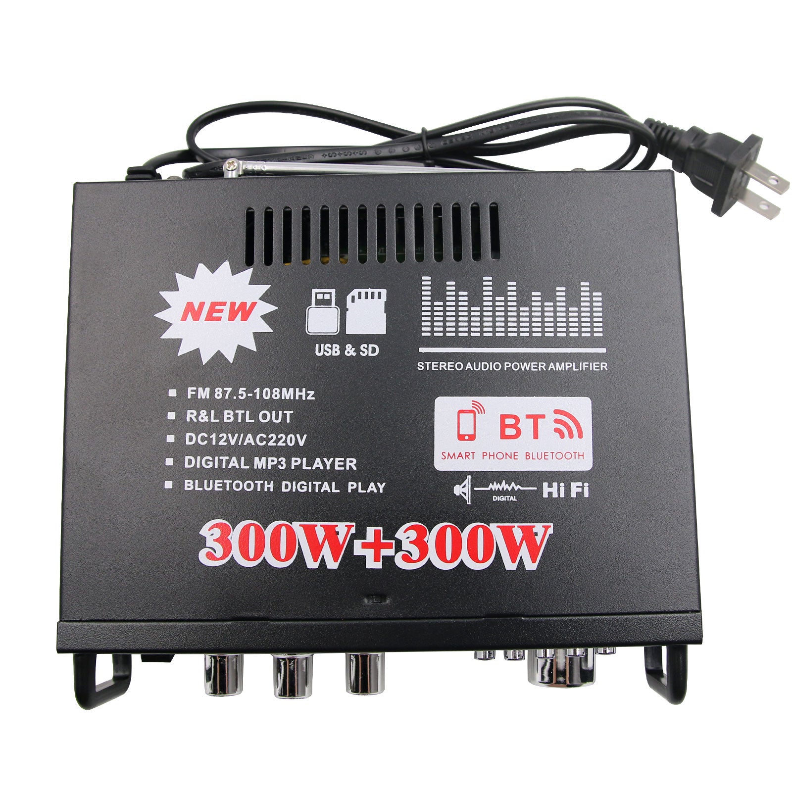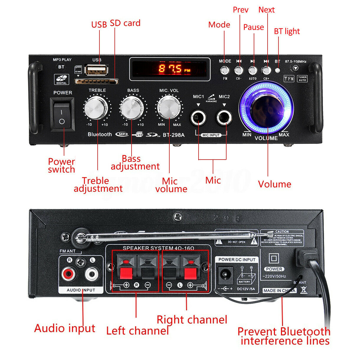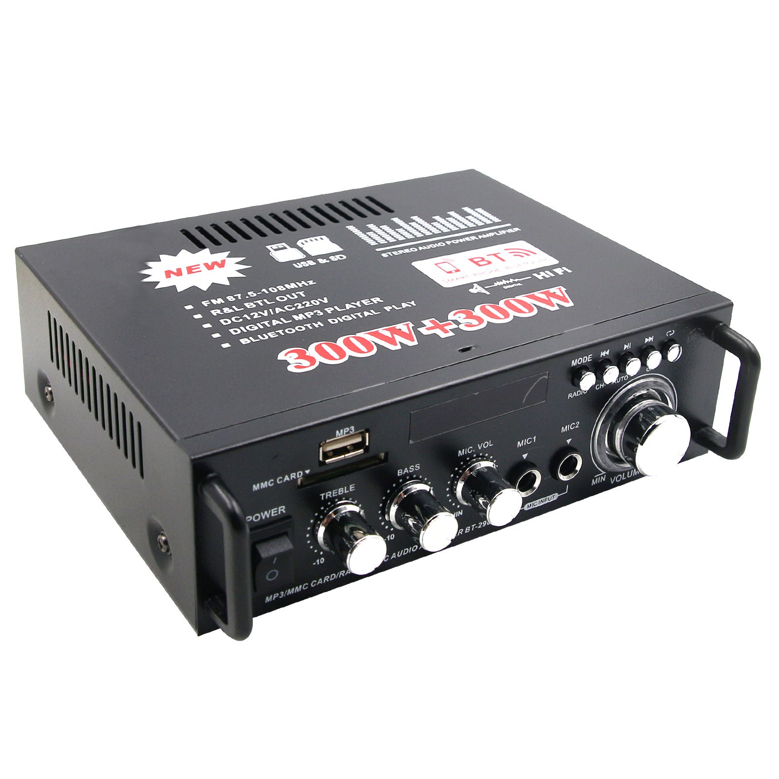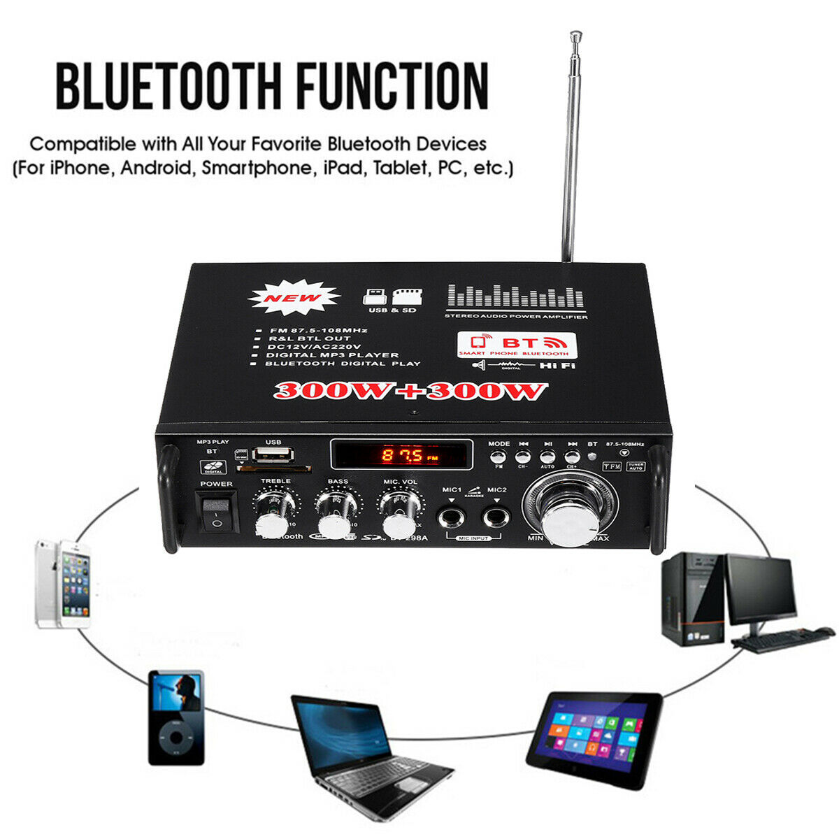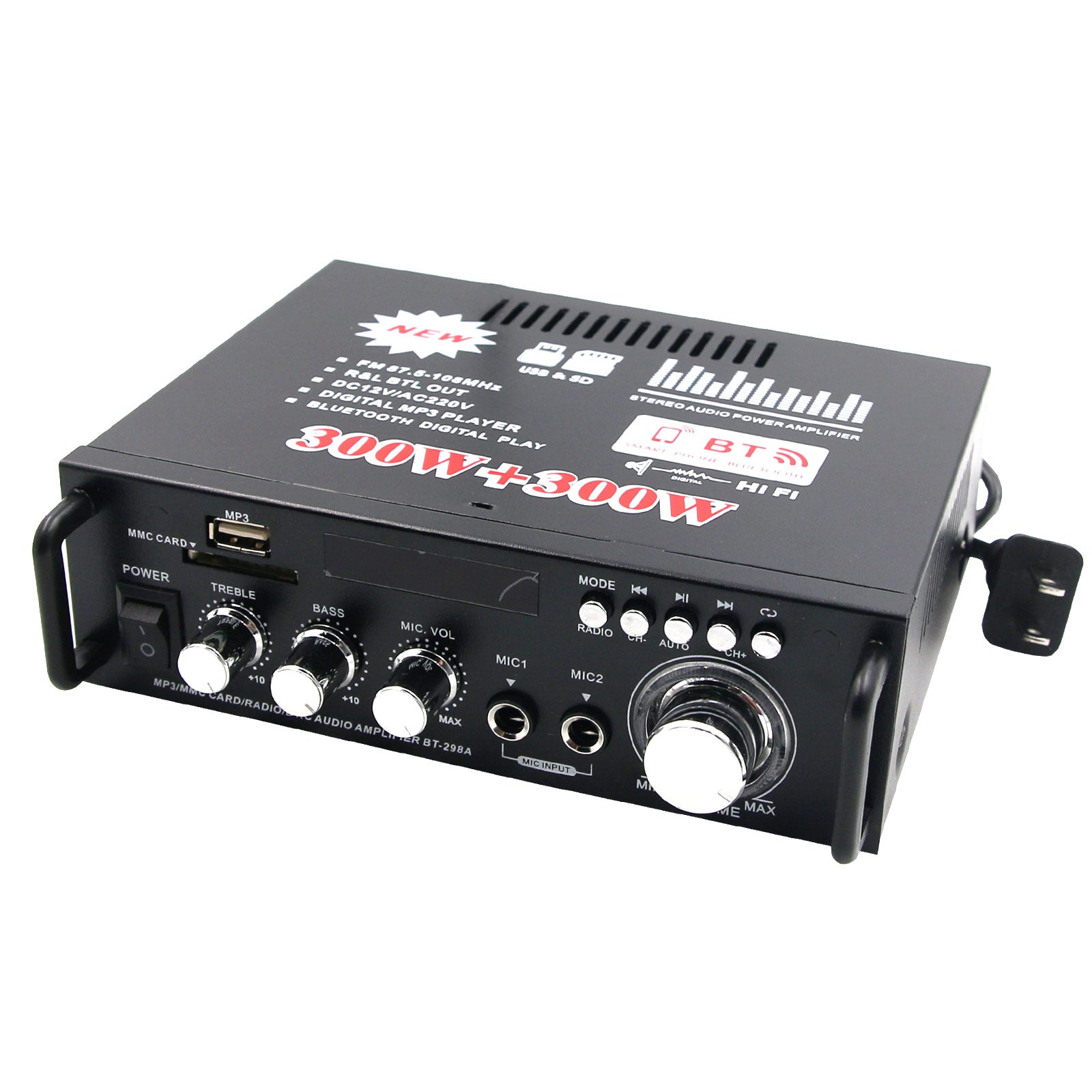 600W Speaker Amplifier HiFi Mini Amplifier 2CH FM Radio LCD Display Home Car 298A Bluetooth Version