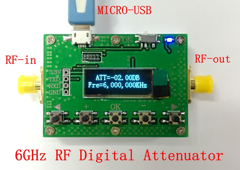 6GHz RF Digital Attenuator Module 30DB Step 0.25DB OLED Display CNC Aluminum Alloy Shell RF Module